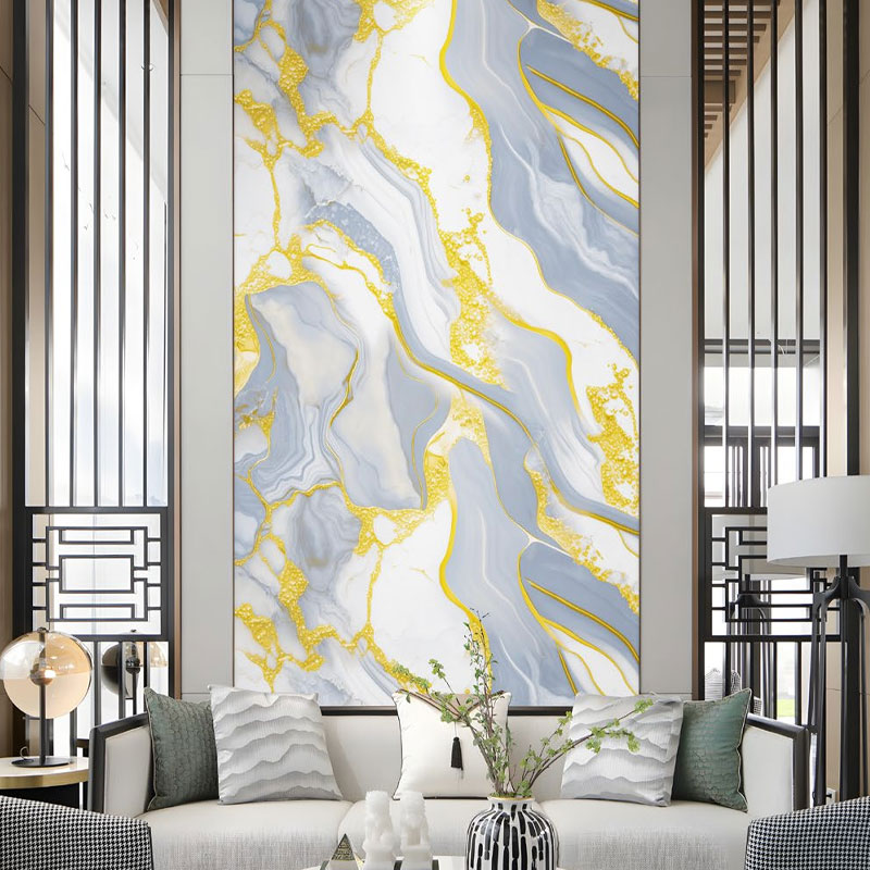 Miếng dán tường bằng đá cẩm thạch mạ vàng là một sản phẩm tiết kiệm chi phí, kết hợp chức năng trang trí và bảo vệ, phù hợp để sử dụng trong nhiều tình huống khác nhau. Hiệu ứng mô phỏng cao, độ bám dính mạnh và khả năng chống nước khiến nó trở thành lựa chọn lý tưởng để trang trí tường hiện đại. So với gạch thật hoặc đá cẩm thạch, miếng dán tường đá cẩm thạch mạ vàng rẻ hơn và dễ lắp đặt hơn, tiết kiệm thời gian và chi phí nhân công.
