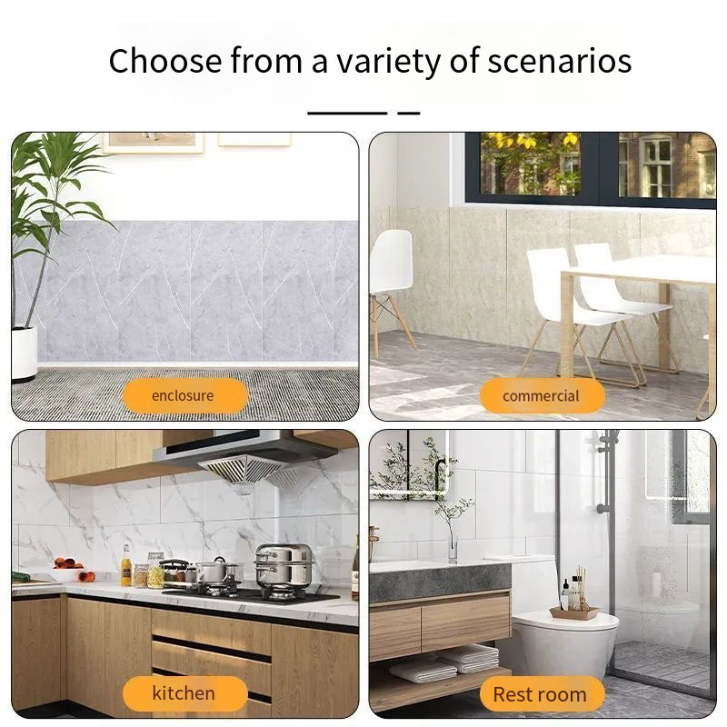 Miếng dán tường chống thấm nước và chống ẩm PVC thích hợp cho nhà bếp, phòng tắm và các môi trường ẩm ướt khác với khả năng chống ẩm tuyệt vời. Có thể tháo rời, thay thế và giá cả phải chăng, nó phù hợp với nhiều tình huống như gia đình và doanh nghiệp.